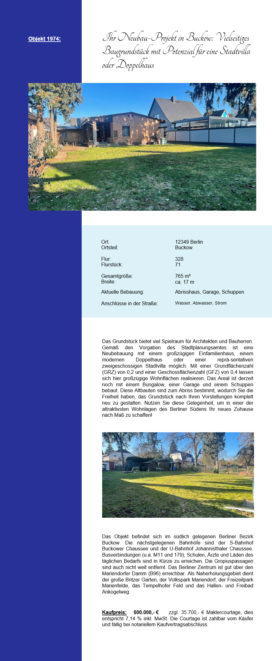 1974 - Wolfgang Schulz Immobilien - Immobilienmakler in Berlin für Häuser, Grundstücke, Wohnungen